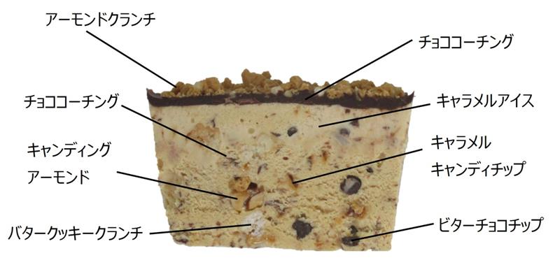 「N.Y.リッチスカッチサンド&Wチョコレート」ならではのビター感とアーモンドの風味、食感をダイレクトに表現しました。キャラメルアイスと一緒に口に運ぶと、ふわりとチョコの香りが広がり、追いかけるようにキャラメルのコクが広がります。香りも甘みも贅沢に重なる奥行きのある仕上げです。