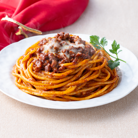 牛肉をじっくり煮込み、赤ワインと香味野菜の旨味が凝縮された、深みのある味わいのボロネーゼソース。パスタとの相性抜群。