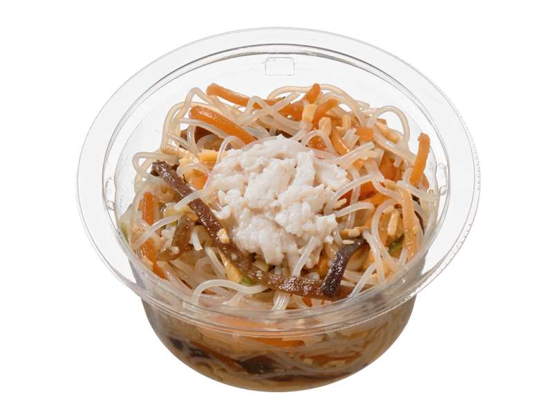 醤油ベースの味に胡麻の風味を効かせたのど越しの良いさっぱりとした春雨サラダです。