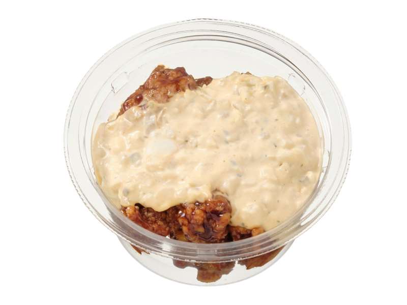 冷たくてもおいしい柔らかな鶏肉に甘酸っぱいタレを絡ませ、たっぷりのタルタルソースと合わせて食べる仕立てです。