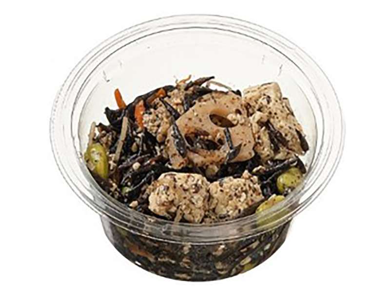 ひじき、豆腐、枝豆、蓮根、油揚げ、人参、ごぼうの7品目を使用した味染みの良いひじきの煮物です。
